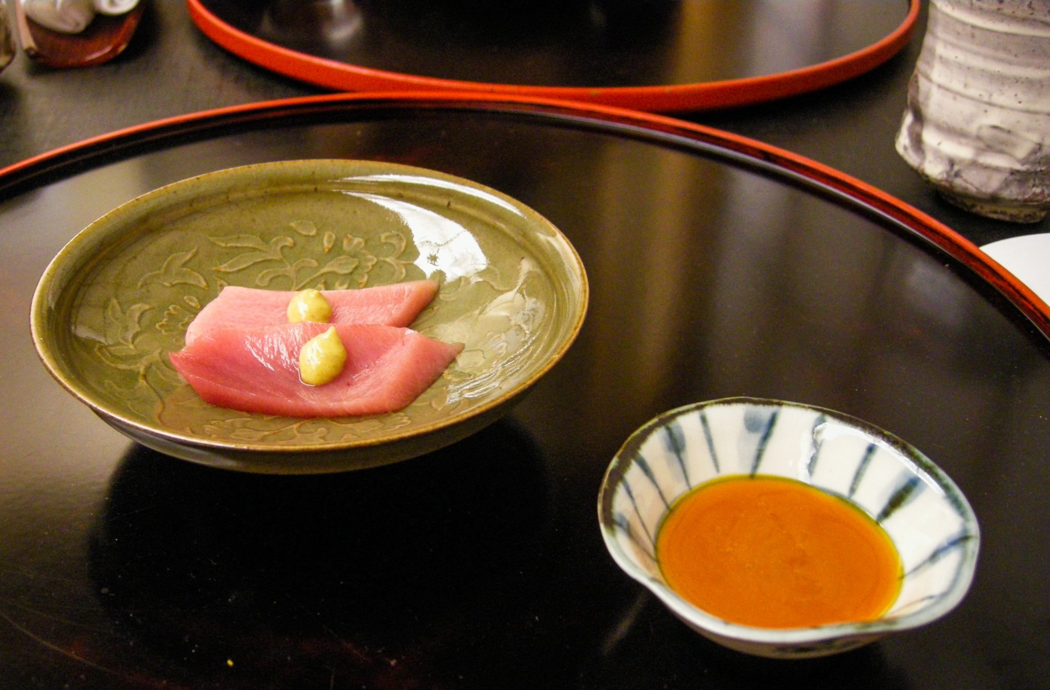 Koshibi (young bluefin tuna) with soy marinated egg yolk. Tastes better than it sounds.