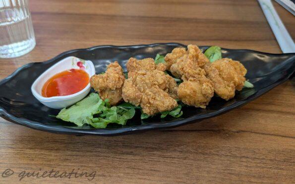 Chicken karage, chicken karage served with sweet chilli sauce. A somewhat small portion but quite juicy and delicious. Lacked much substance though as these minuscule little balls could have all come from the same chicken leg. It could have been worse though, as it could have been substandard in taste. Would have been nice to have more though.