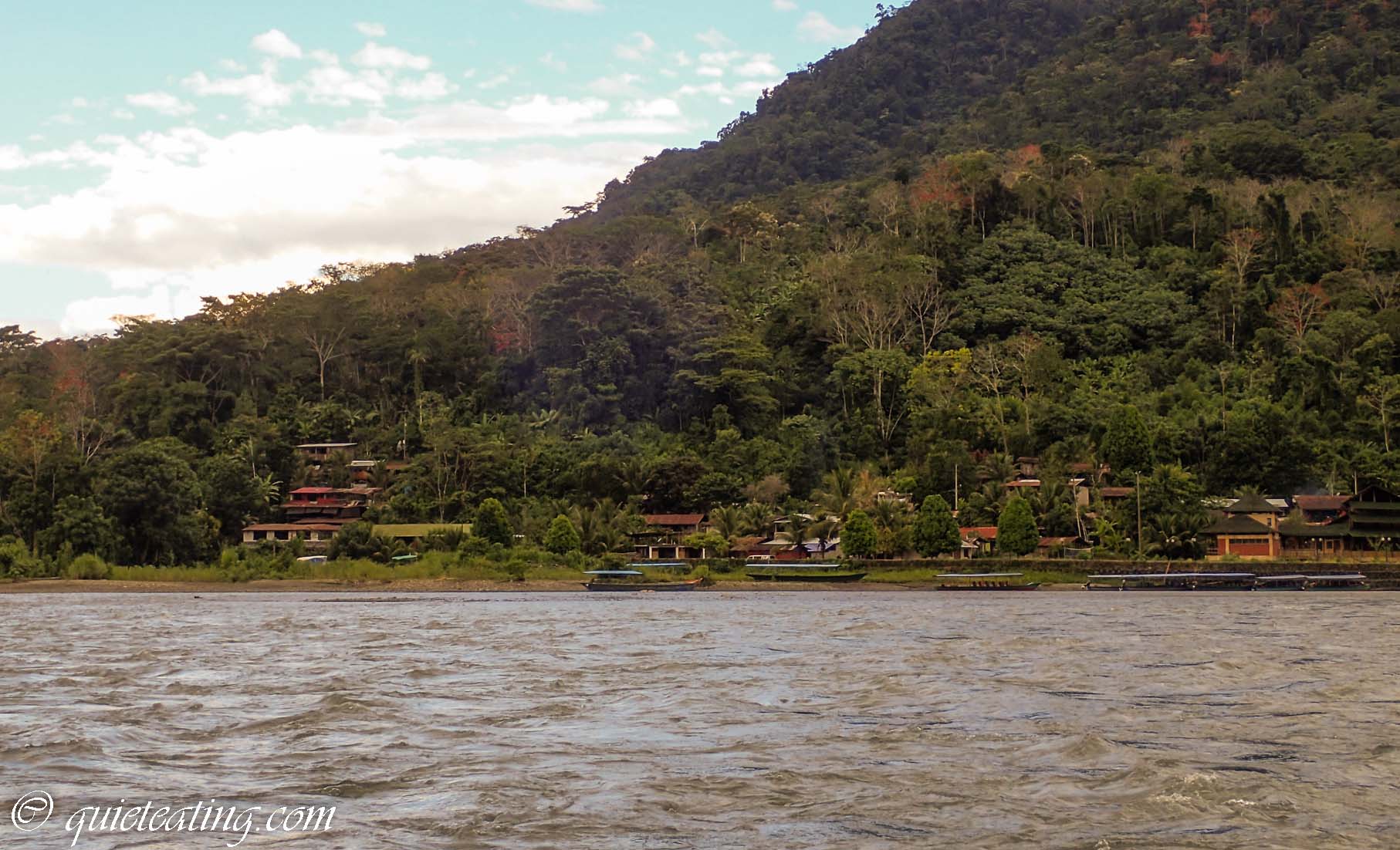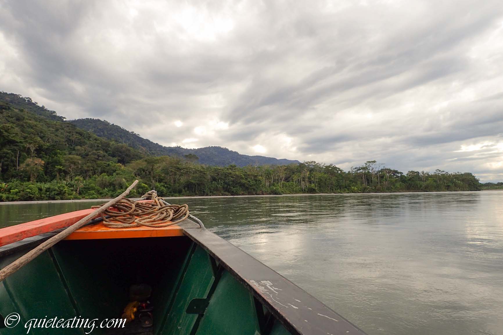 It is the most bio diverse place in the world and holds half of the world’s species in its canopy alone. So I couldn’t wait to visit although it was to be a rather arduous journey to get there. It started with a 4am pick up by van which travelled on modern highways, to asphalt single lane roads, to dirt tracks and then to rocky paths where it wasn’t clear there really was a way. After 7 hours we arrived at the dock and then enjoyed a further 3 hours heading upriver on a narrow boat to our camp.