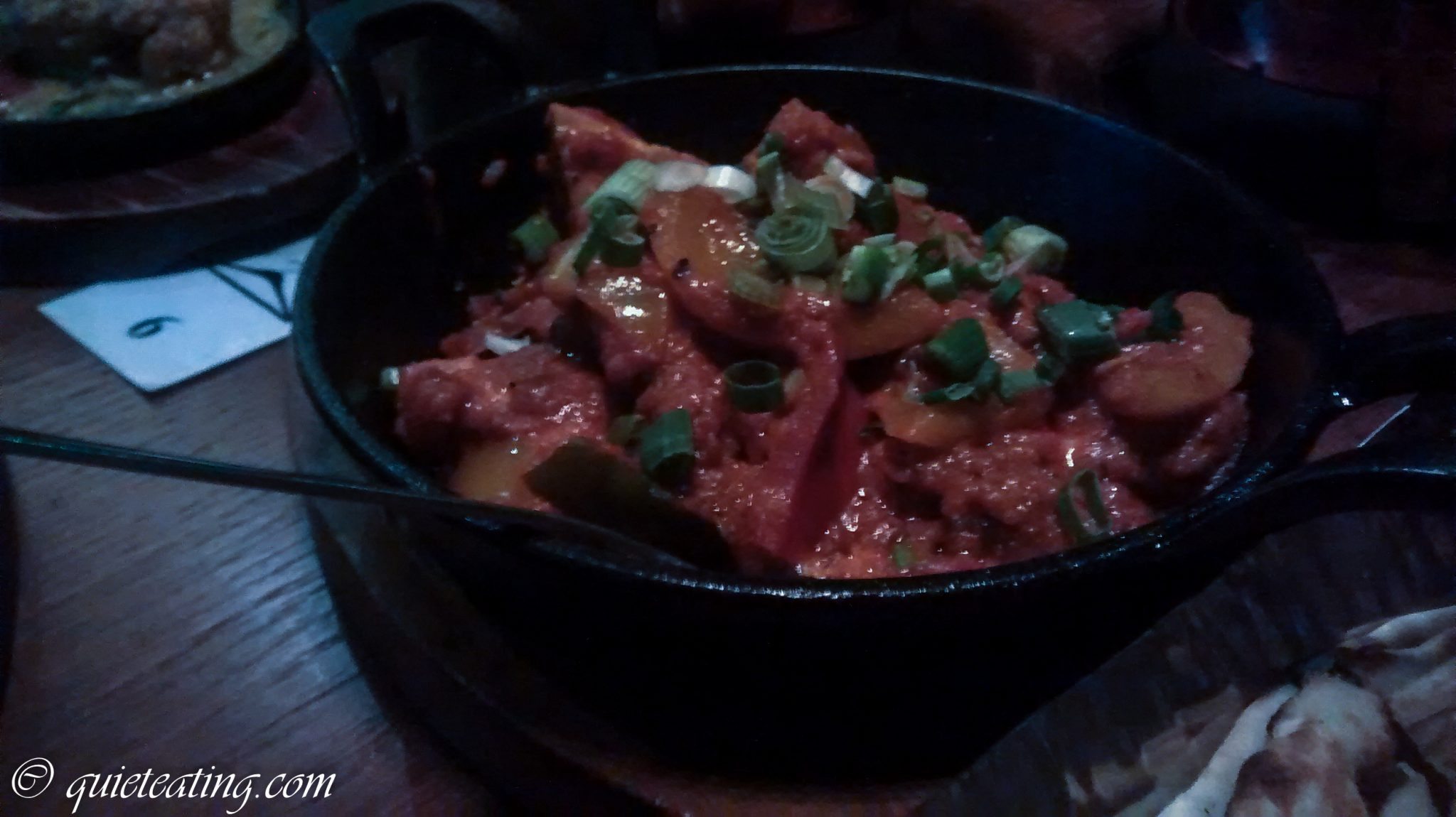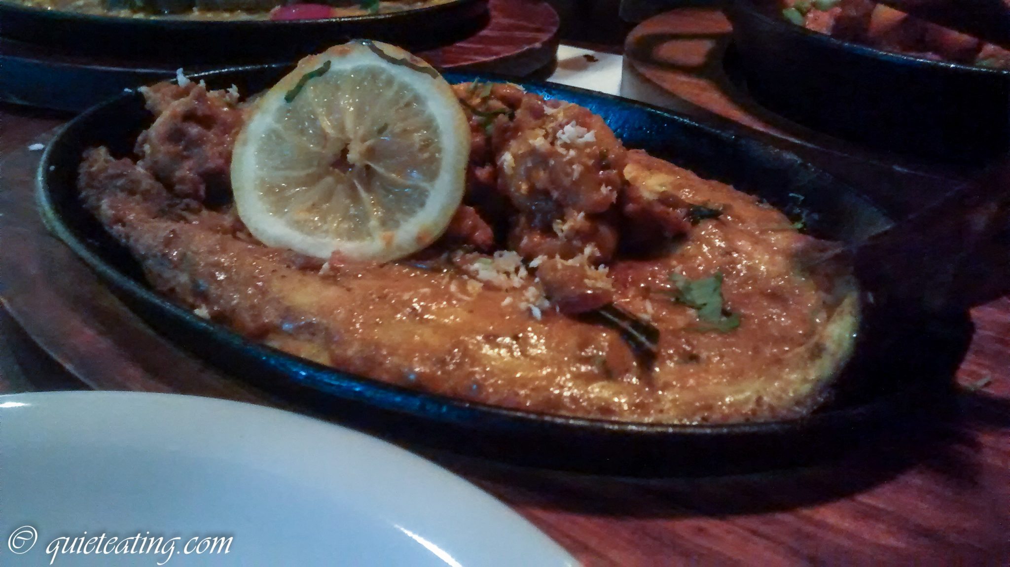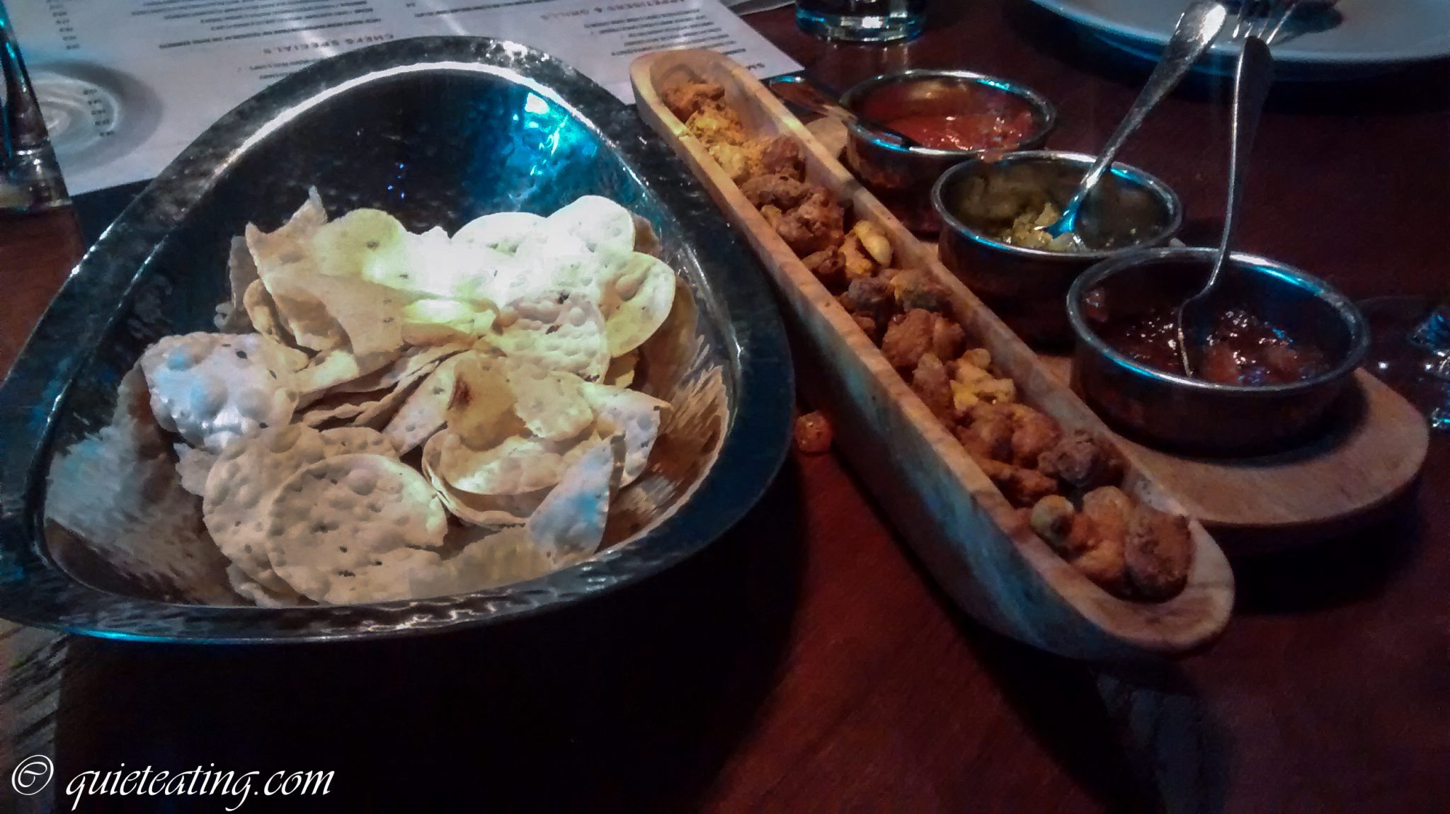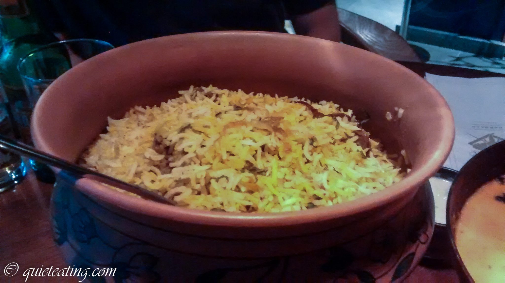However, some of the dishes were a bit more ho-hum. Snacks (we tried gun powdered nuts and some crisp-sized pappadums with various chutneys) were fairly forgettable – not bad, but nothing really stood-out here. Calamari fritters were under-spiced and just a touch rubbery, and the briyani was a bit on the dry side.