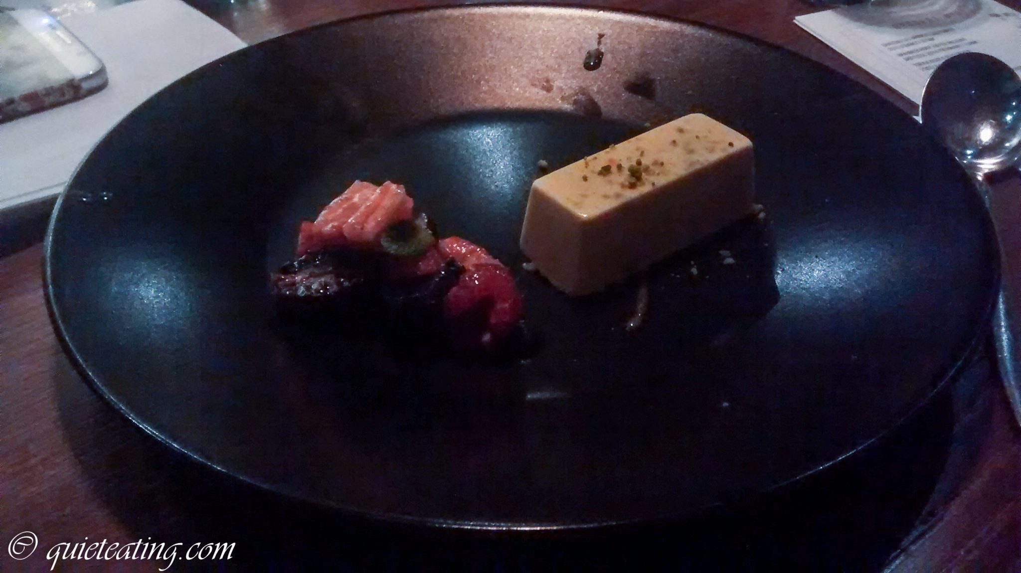 It is housed in premises previously occupied by the Japanese restaurant Chrysan – a large, spacious and airy room with a long bar and exposed kitchen. Interesting, the toilets are also a hangover from the previous ownership – with deluxe Toto warmed seats that can wash and wipe your bottom, if you are into that type of thing… On the Saturday evening that we visited, the room was quite empty to start with but soon filled up, with quite a few big groups of people – others thought that it was a decent place to hold a party.
