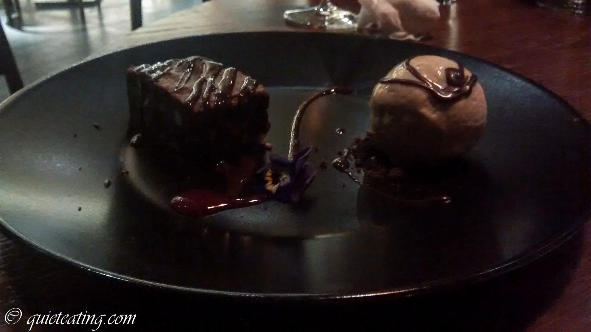 Desserts were also a bit of a mixed bag. A ghulab jamun, the special of the day, was particularly outstanding – served in a cocktail glass and heaped on top of a shortbread biscuit and a mango sorbet – this was probably the best of interpretation of a traditional Indian dish I’ve seen. A pistacho kulfi was good – although relatively small for the price – doubling the portion sized might not have gone amiss. The chocolate cake was pretty much what it said on the tin – nothing particularly Indian about it, and not the greatest example of what a chocolate cake ought to be either.