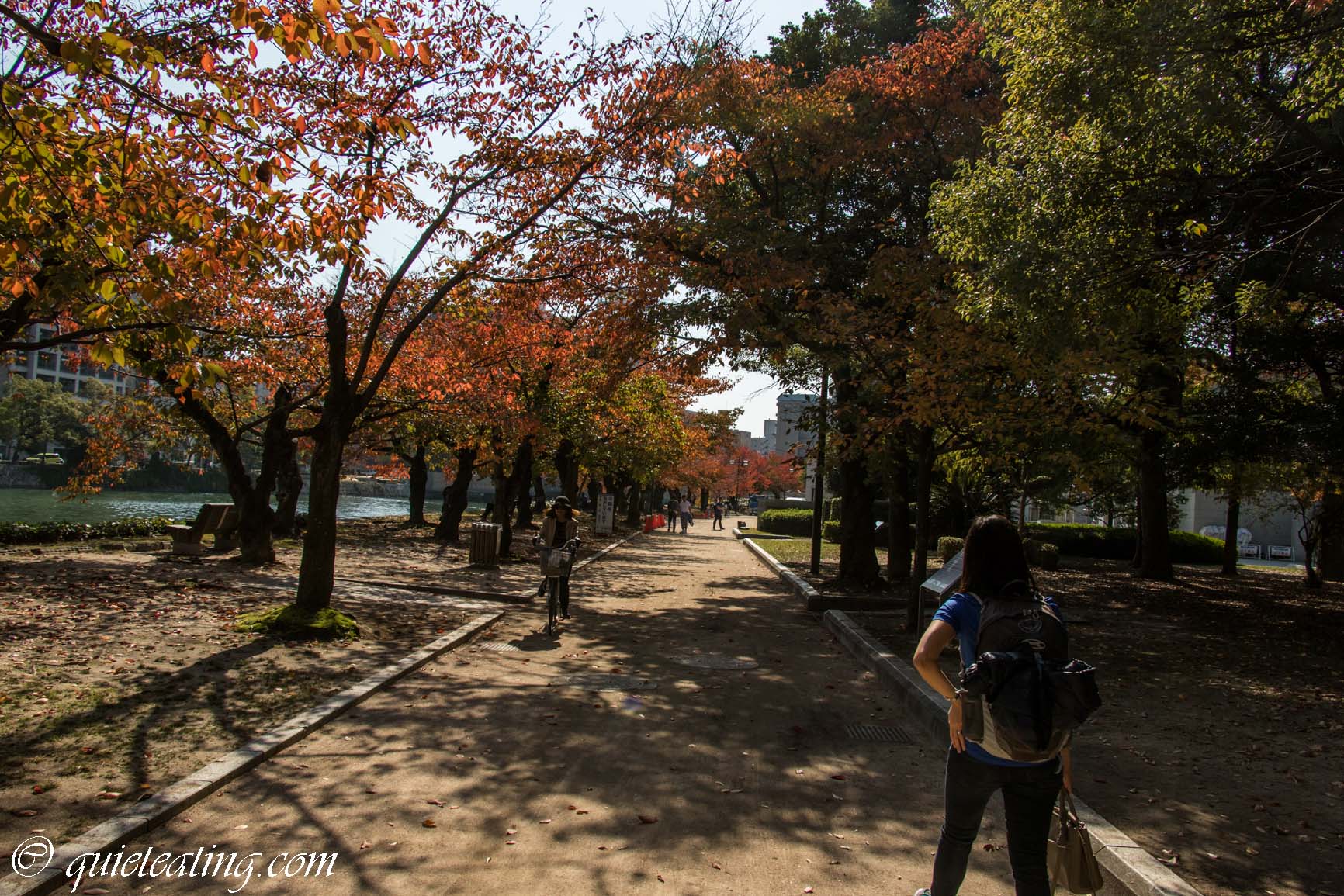 The peace memorial with the eternal flame in the distance. It will keep burning until the last nuclear weapon is destroyed. Something to hope for.