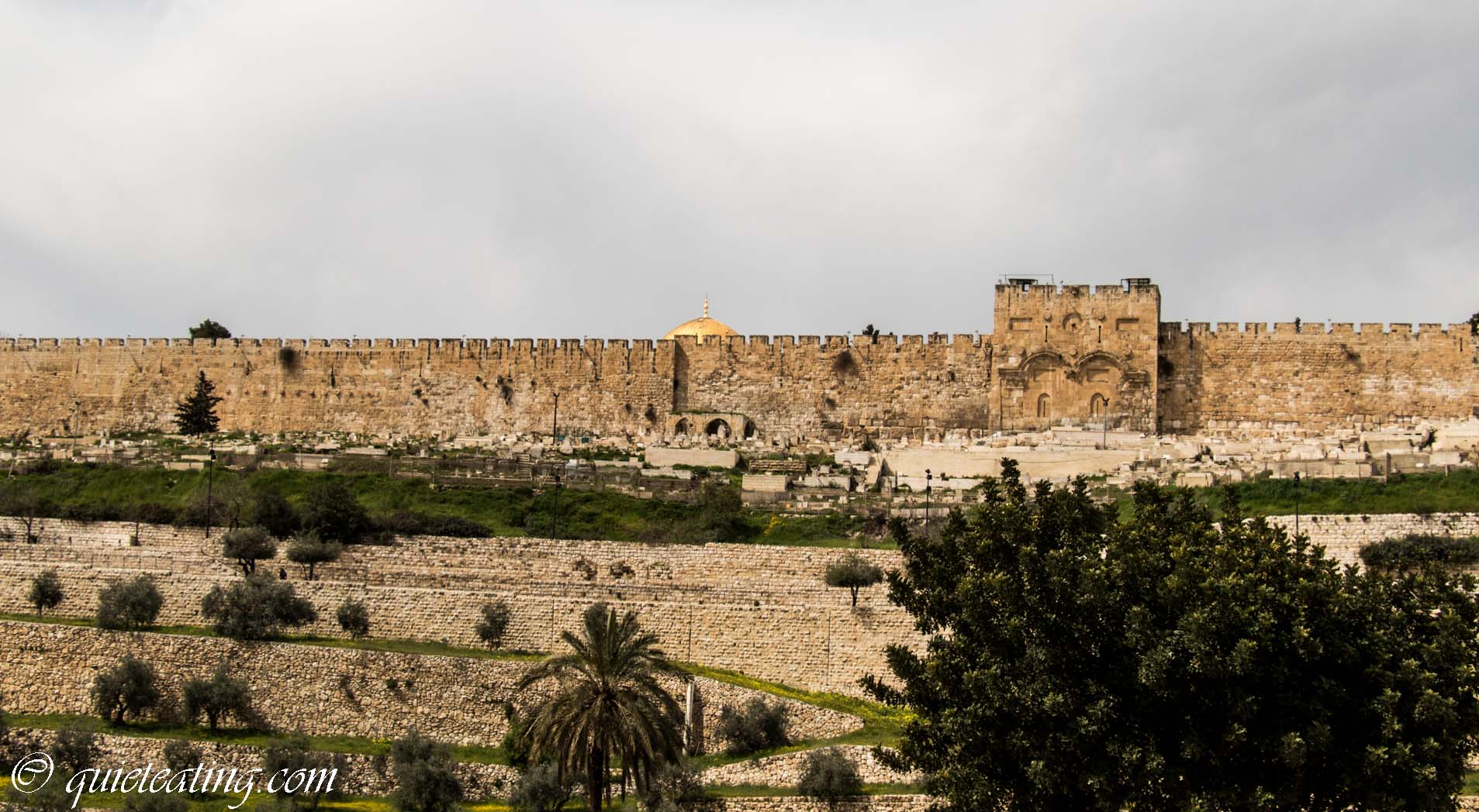Onward we went towards a place of happier memories, the Dome of the Rock and a survey of the walls of Jerusalem. Before ending the day on a solemn note in the garden of Gethsemane where Jesus sweated blood in the hours before he was betrayed by a kiss.