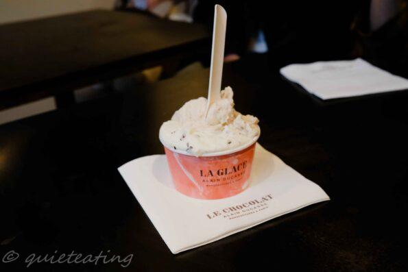 Hazelnut praline with stracciatella. The hazelnut praline nutty fulsome flavour filled me with happiness. It was sweet without becoming cloying and nutty avoiding graininess. The stracciatella was delightfully cheesy, almost savory and very satisfyingly. Together these combined to make a great thing.