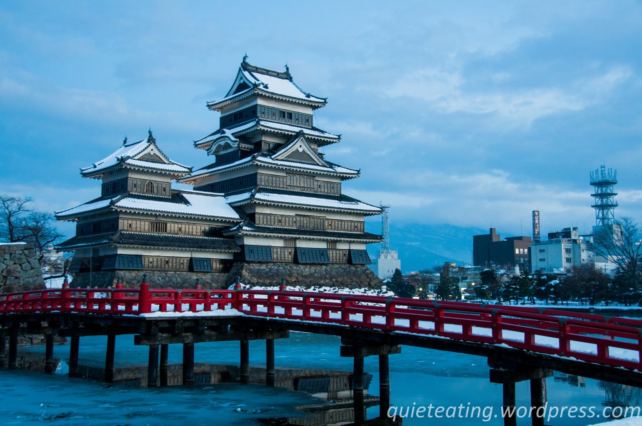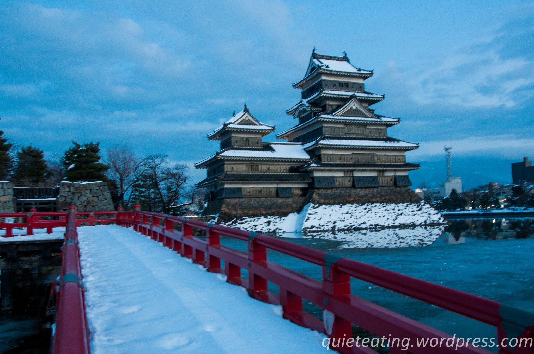 The castle looks great with the snow, makes me want to go to Matsumoto!
