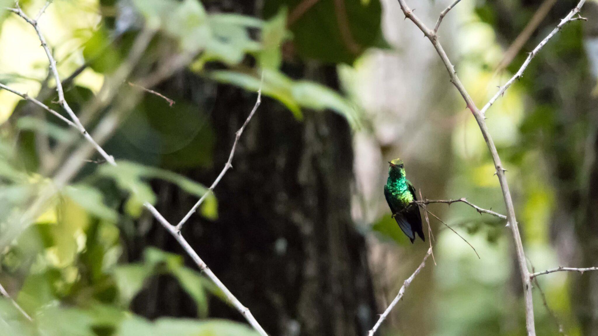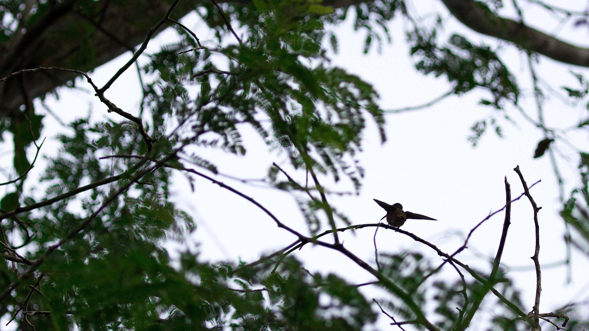 Buff-bellied Hummingbird looking into the tree