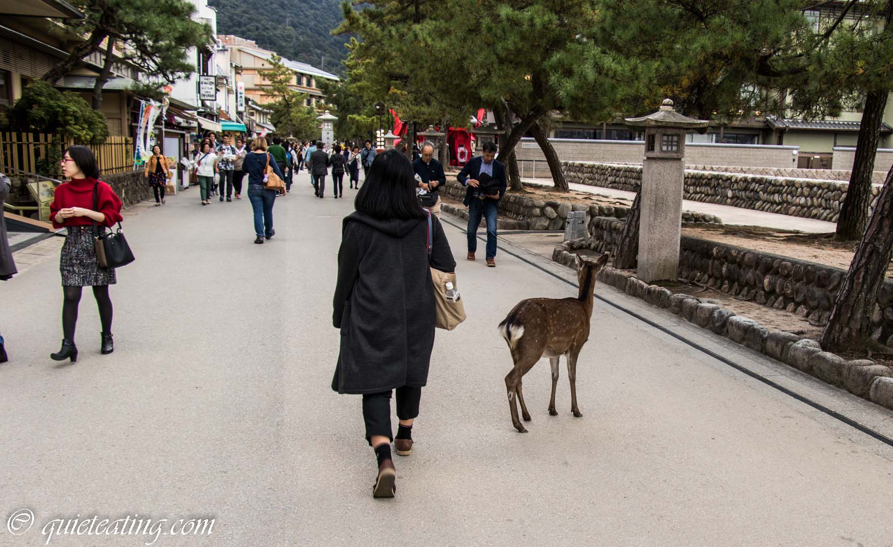 By way of contrast, our next visit was to Miyajima. Just off the coast of Hiroshima. The autumn leaves were stupendous, the dinner almost overwhelmingly and the floating torii gate of Itsukashima by day at low tide and by night at high tide something else. Oh and breakfast was probably one of the best I’ve ever eaten. Enough superlatives there.