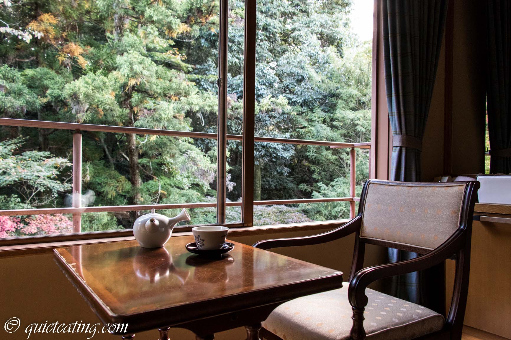 Inside our roykan. Our little sitting room overlooking a brook and the forest. Perfect time to try some tea