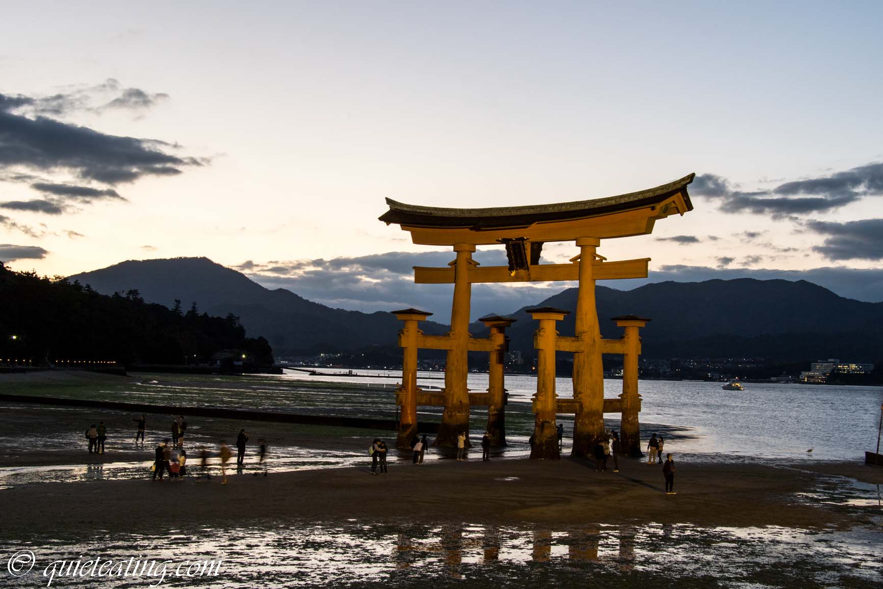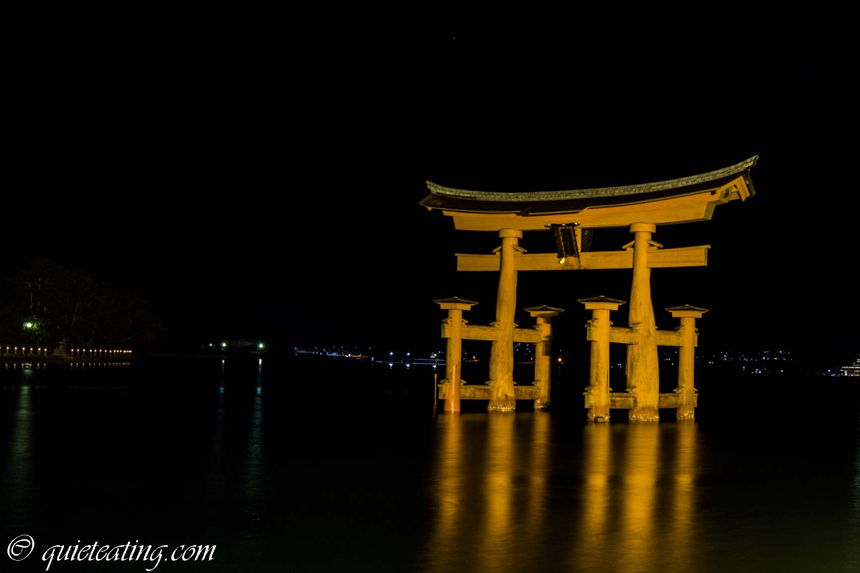 Having sated our stomachs, we went out to see the shrine by night. Lit up delicately in high tide, it was rather majestic