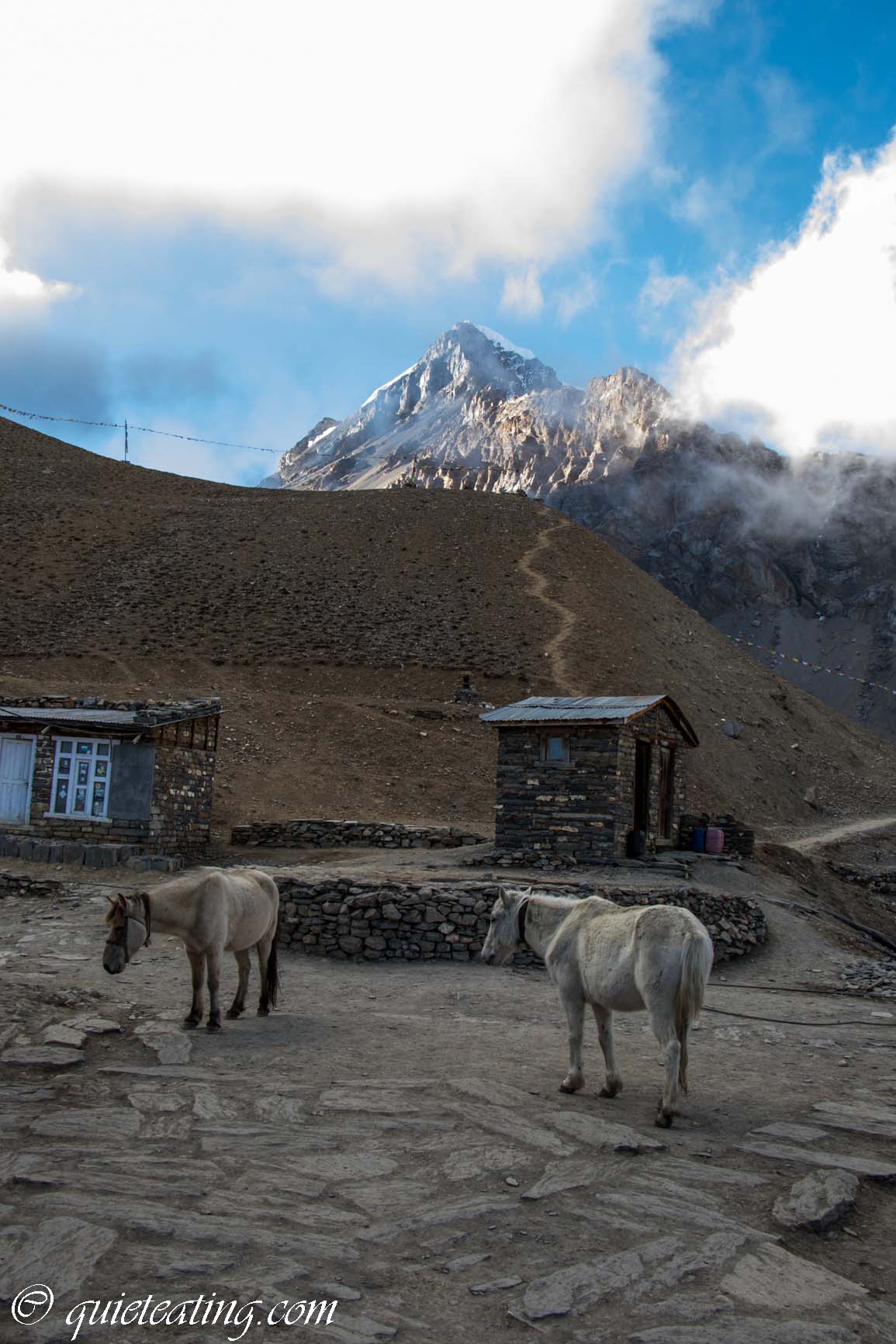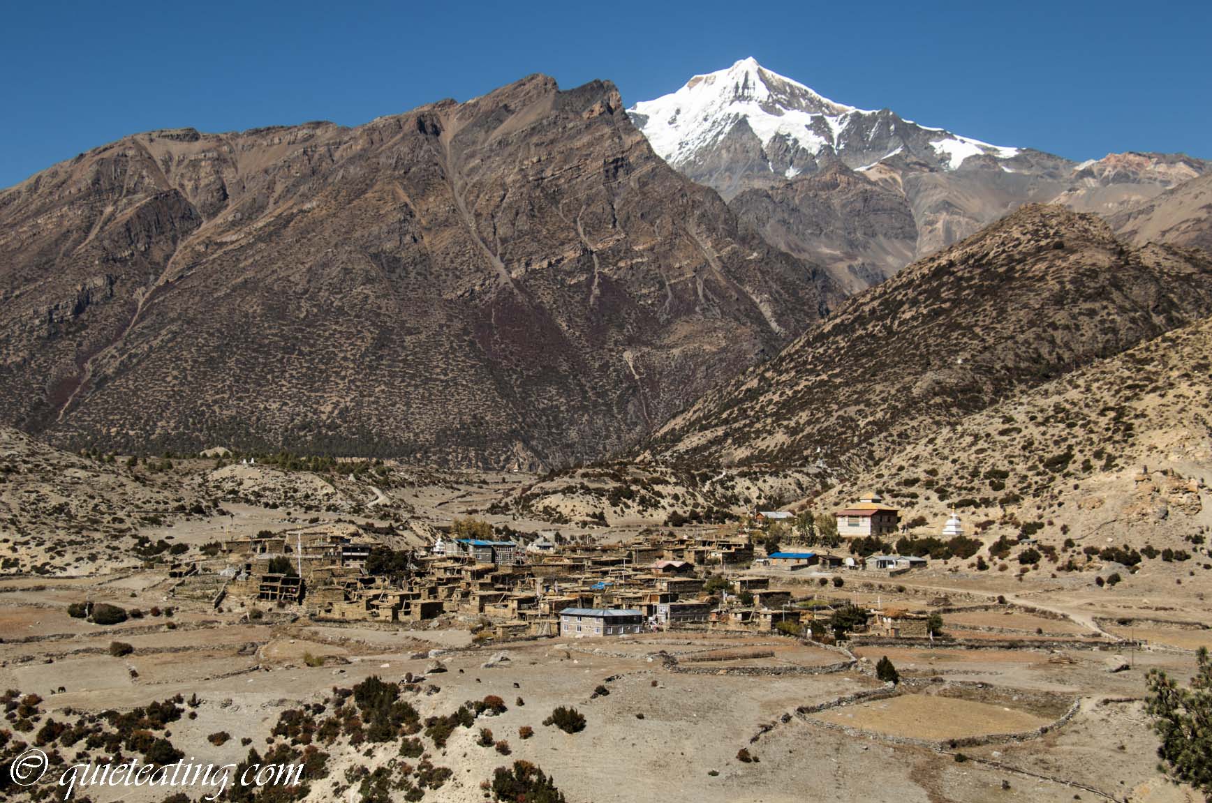 Manang. A pretty little town where we would enjoy our last shower. Not hot water after 3500m.