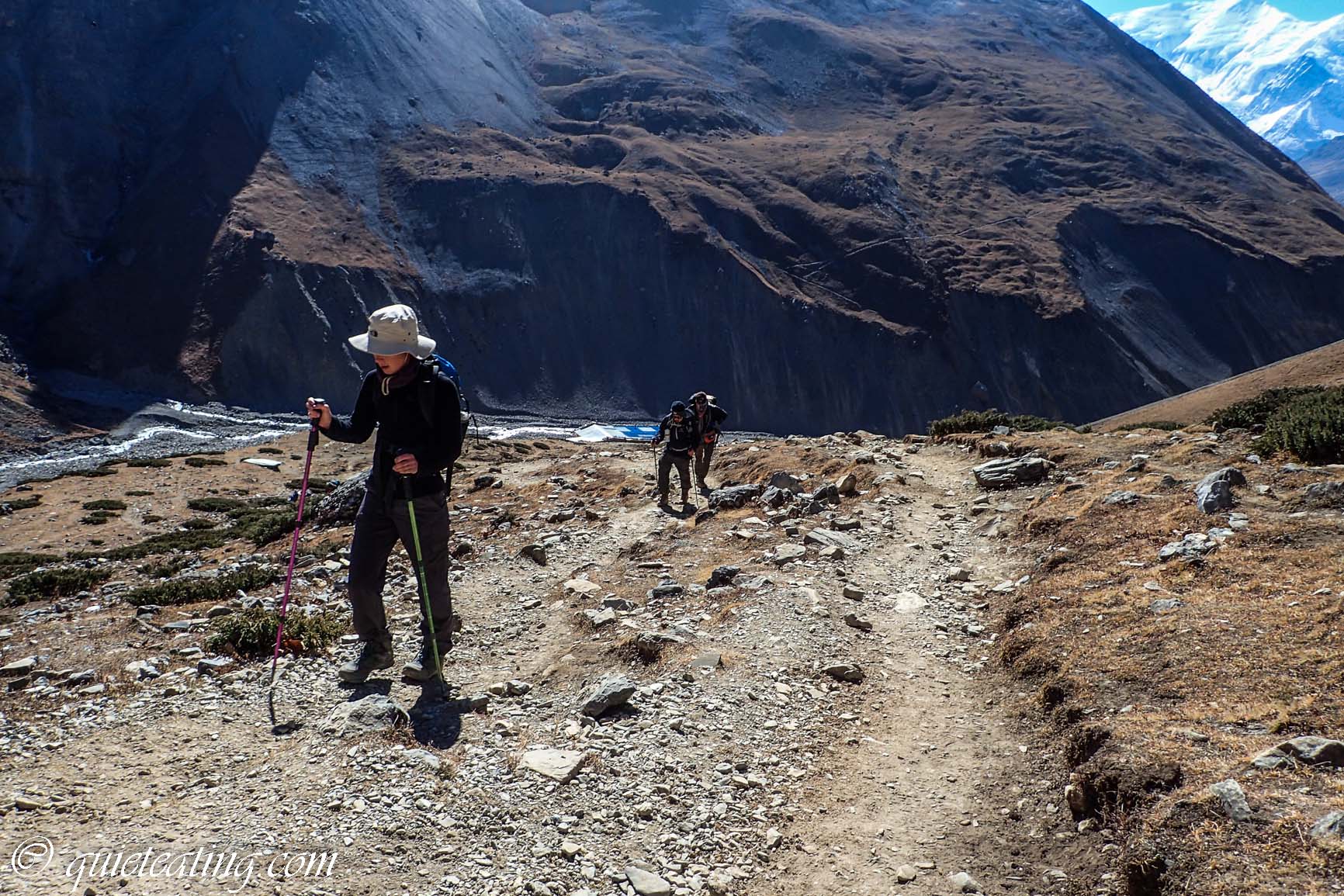 Falling off would mean a long way down. So we continued to trudge upwards to the pass