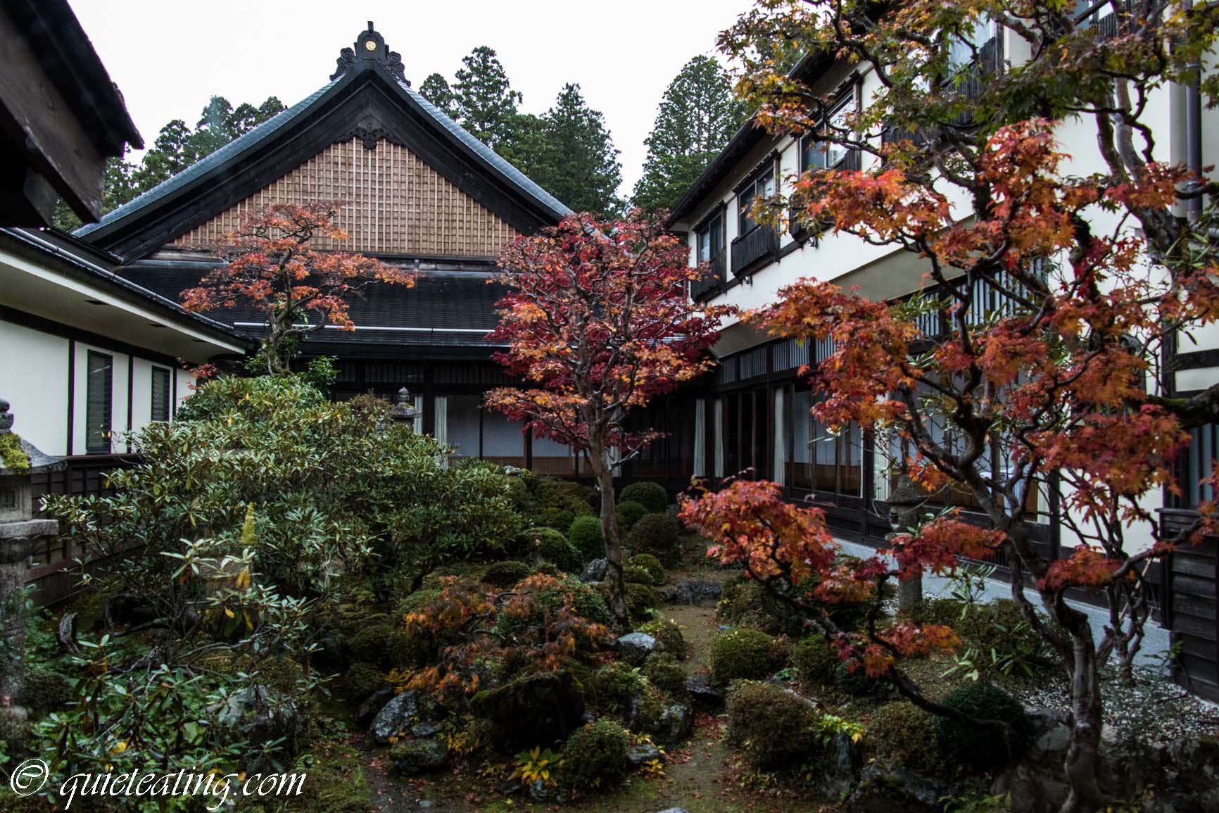 Buddhist monasteries with autumn leaves