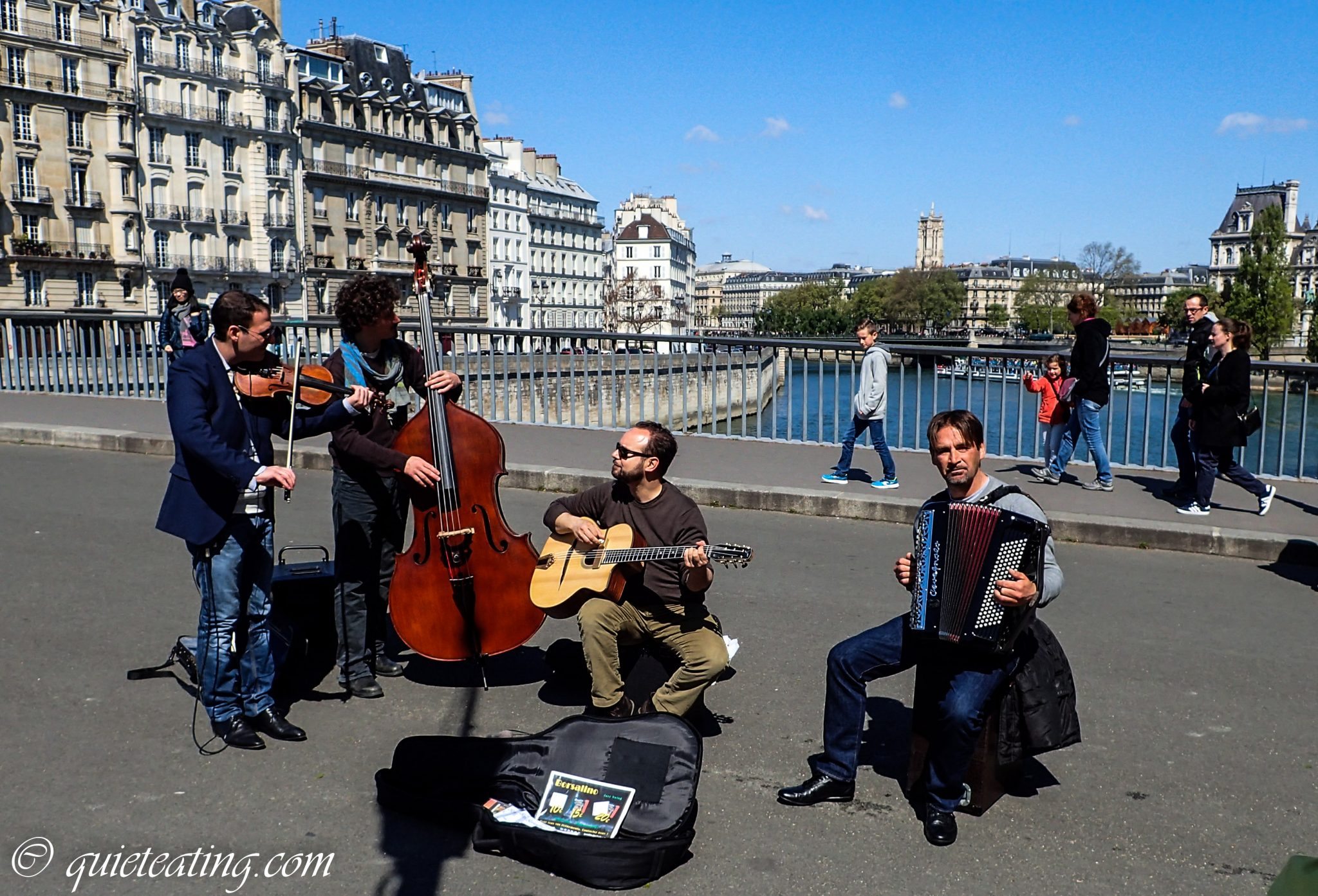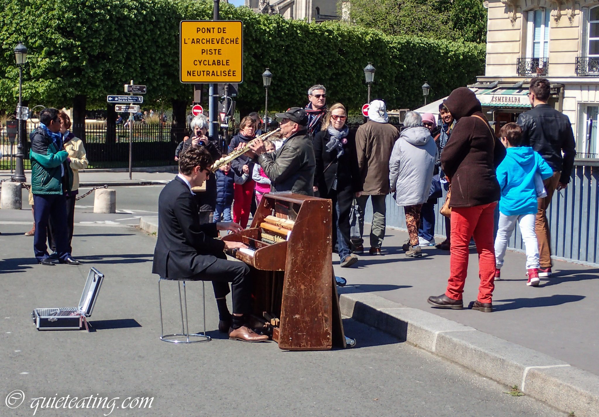 While stopping to listen to the street music
