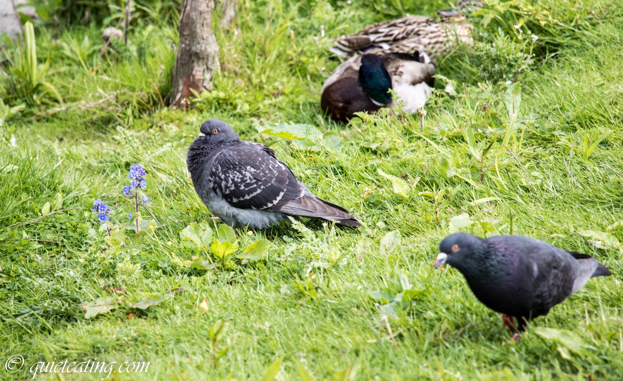 and birds admiring the flowers